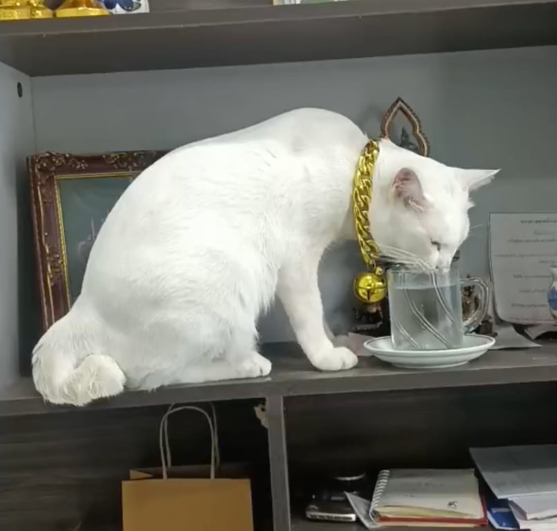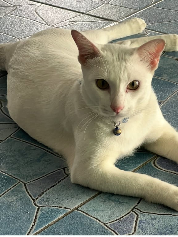 รอยตำหนิ: สีขาวหางกวัก มีปลอกคอสีทองหายจาก ซอย 4 พิกุลแก้ว ถนนวัดศรีวารีน้อย