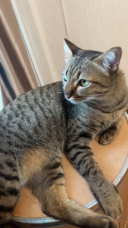 รอยตำหนิ: เทาดำอมเหลือง ลายสลิต จมูกแต้มเหลืองๆ น้องลงทะเบียนสัตว์เลี้ยงแล้ว ฝังชิฟเรียบร้อย ไม่ก้าวร้าว เก็บตัว ขี้ตกใจ ไม่ดื้อ ไม่ซน ไม่ดุ ไม่ชอบให้อุ้ม