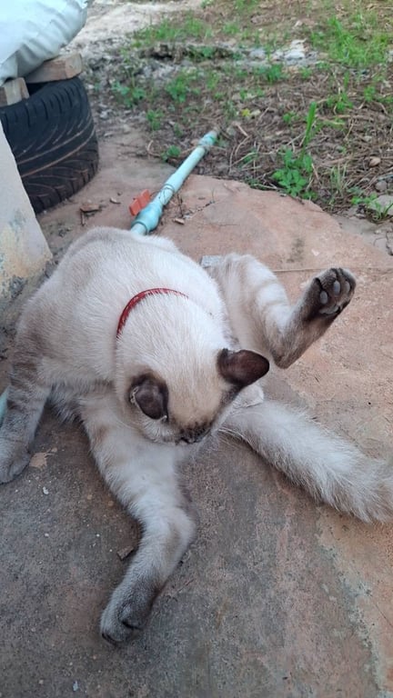 รอยตำหนิ: ตาสีฟ้า ปลอกคอสีแดง มีจุดดำคล้ายวิเชียร์มาศ บริเวณหู เท้า หางเป็นแมวรักสันโดษ แต่จะไม่ค่อยกลัวคนถ้าไม่ทำเสียงดัง เพราะถ้าเสียงดังเขาจะวิ่งและขี้ตกใจมาก ชอบอ้อนถูขา