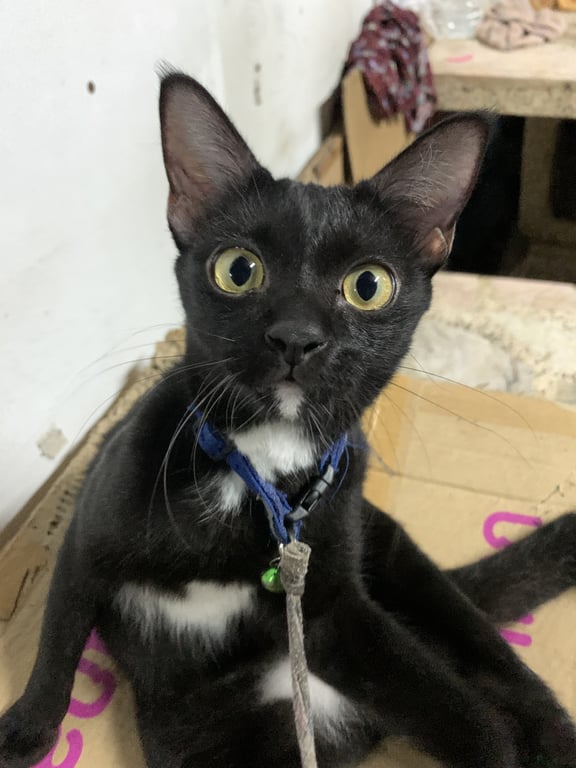 รอยตำหนิ: มีเเต้มสีขาวตรงคาง เเละมีเเผงคอสีขาวเหมือนสามเหลี่ยมขี้กลัว กลัวคนเเปลกหน้า กลัวเสียงดัง กลัวรถ เเต่อ้อนคนที่บ้าน