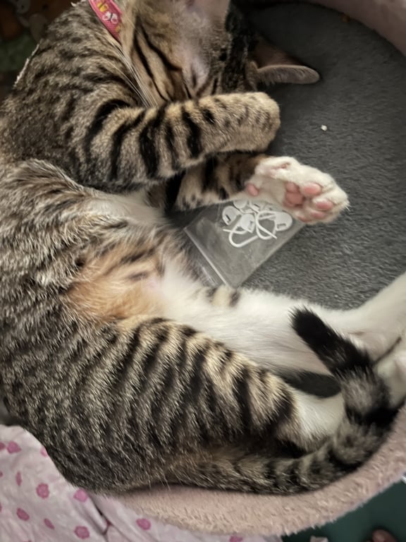 รอยตำหนิ: ตรงขาหลังน้องจะเป็นลายสีขาว เหมือนถุงเท้าน้องเชื้อง ไม่กลัวคน