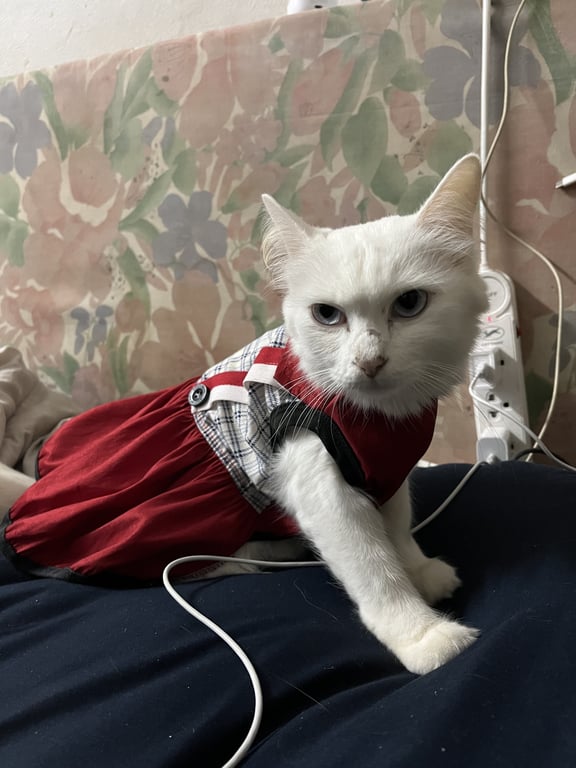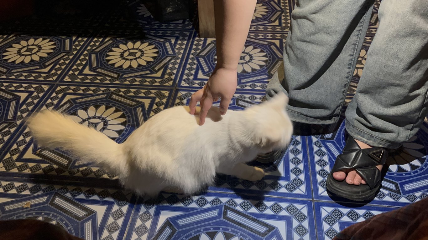 รอยตำหนิ: หางกวักและฟู จมูกมีรอยแผลเป็นปัจจุบันไม่มีขนขึ้นแล้วหน้าเหวี่ยงเหมือนดุ แต่ขี้กลัวมาก วิ่งเบาวิ่งเงียบ ชอบแอบตามซอกตามมุม ตัวเล็กมากๆแล้วก็ตัวเบามากๆ