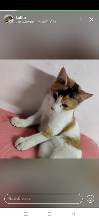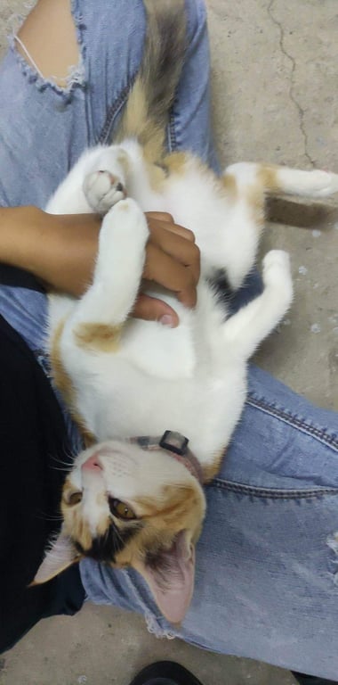 รอยตำหนิ: ตรงหัวจะมีสีดำผ่าตั้งแต่คิ้วซ้าย ไปถึงหัวขวา ข้าซ้ายหน้า มีสีส้มประปลาย อายุประมาณ5เดือน ขนาดตัวไม่เล็กไม่ใหญ่ปลอกคอสีชมพูลายสก๊อต ไม่แน่ใจว่าตอนนี้จะหลุดออกหรือยัง