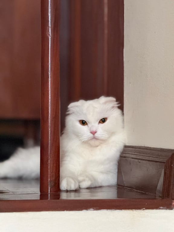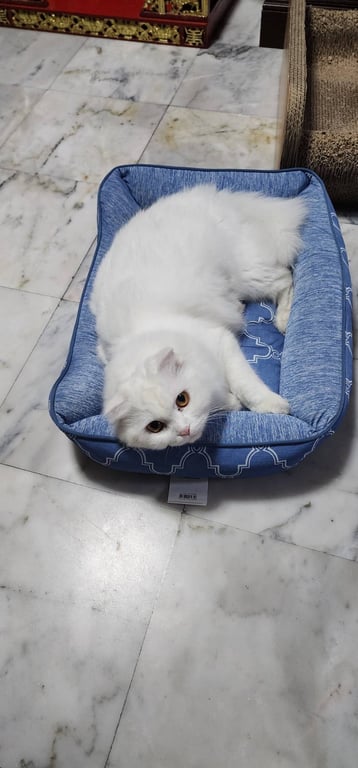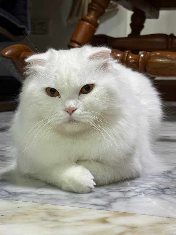 รอยตำหนิ: หูพับ มีสีบลูน้อยๆเล็กๆตรงหัวต้องเกลี่ยขนด้านบนออกจะเห็นขี้เล่น จำชื่อตัวเองได้ เอาเสียงเคาะๆก้จะเดินมา ติดคน