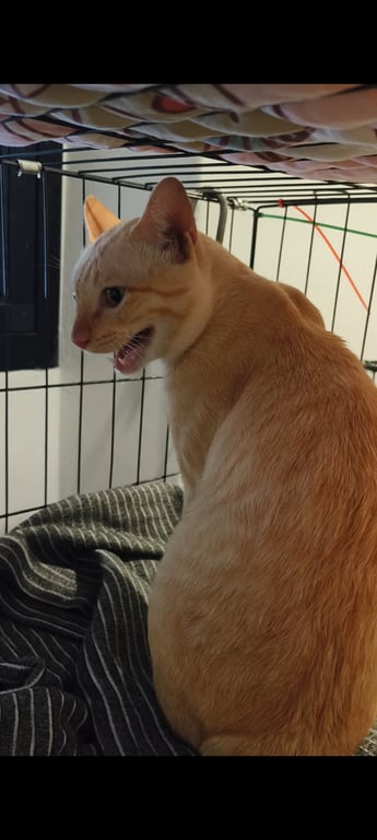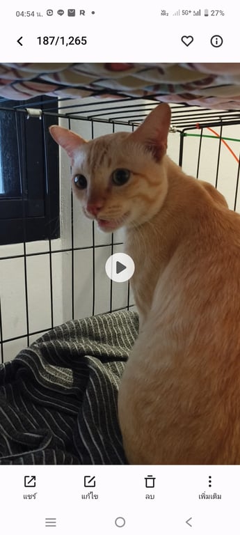 รอยตำหนิ: แมวสีส้มครีม หางตรงแมวอัธยาศัยดี ไม่ดุ น้องไม่กินอาหารคน ปกติกินแต่อาหารเม็ด และเปียกของแมว เรียกเหมียวๆ จะไม่หันถ้าเรียกชื่อเขาจะรู้