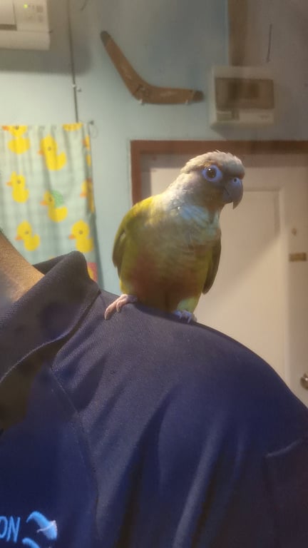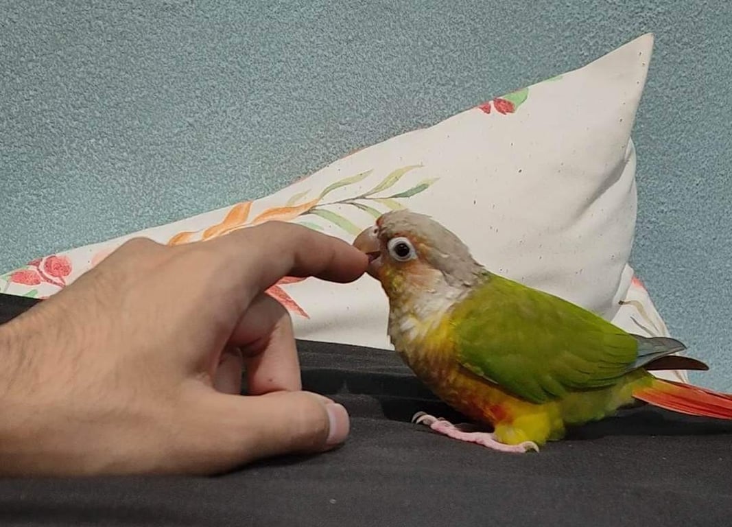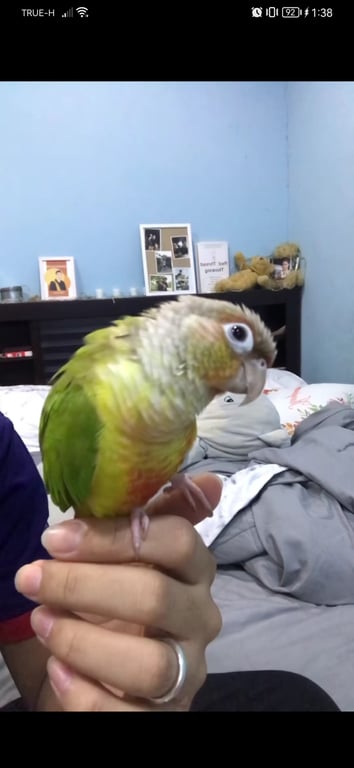 รอยตำหนิ: มีรอยแผลนิดนึงตรงขาขวาน้องค่อนข้างขี้หนาว และกินยาก จะกินแค่เมล็ดทานตะวัน กล้วยและแก้วมังกร