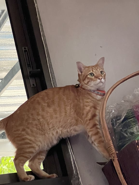 รอยตำหนิ: จุดดำที่สมูก ตาสีเขียว หางยาวขอดปลายหาง ตัวใหญ่ (วันที่หายใส่ปลอกคอสีมิ้นต์มีจี้แมวสีเหลืองติดอยู่)ขี้อ้อน ไม่ดุ คุ้นคนแปลกหน้า