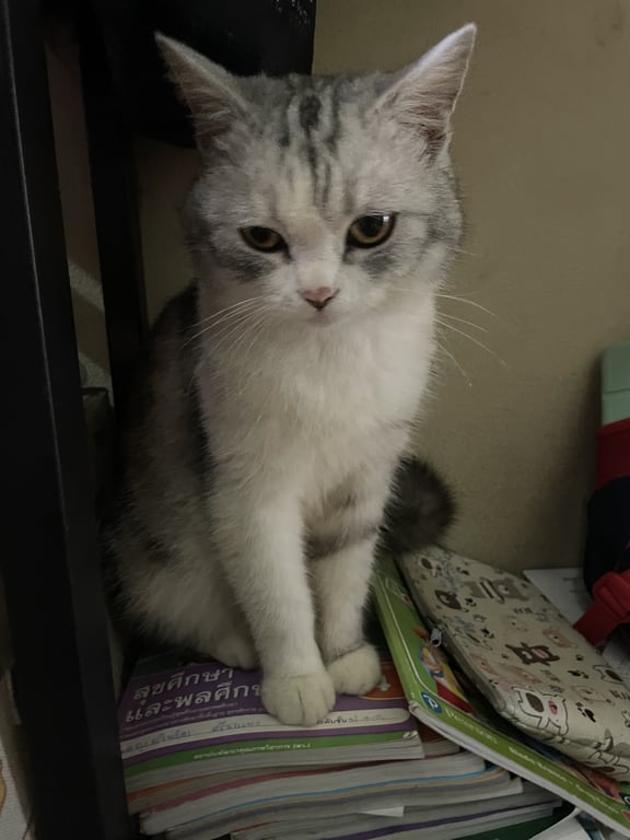 รอยตำหนิ: มีแผลที่คอและหลังคอไม่ได้ใส่ปลอกคอกลัวคน หลบซ่อน