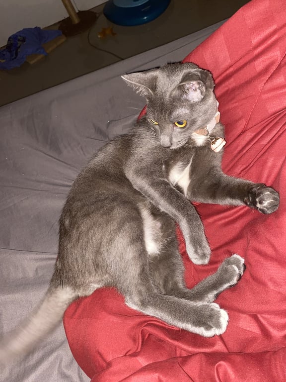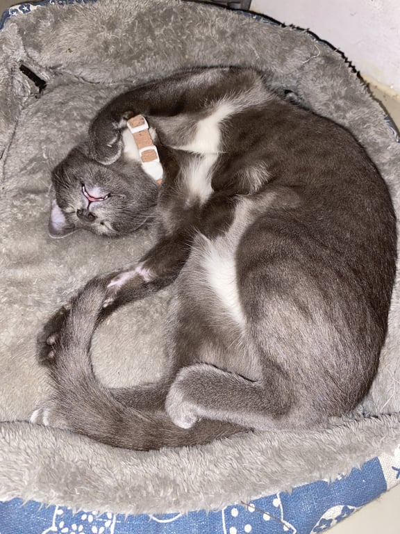 รอยตำหนิ: อกและท้องมีสีขาว ขาข้างขวามีแผลเป็นจากการเย็บแผล