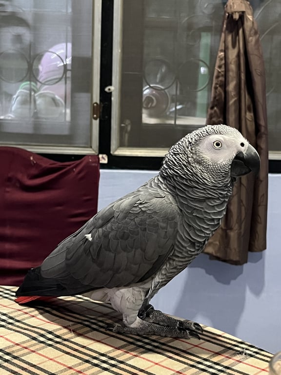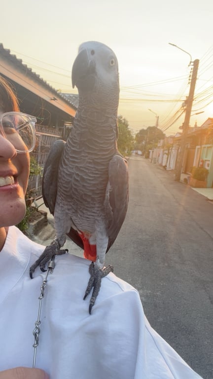 รอยตำหนิ: ตัวเทา หางแดง มีห่วงขาสลักชื่อพร้อมเบอร์โทรชอบผิวปาก ชอบเดาะลิ้น ติดพูดคับๆๆๆๆ ค้าบ มาจุ๊บก่อน เข้าบ้านปะ เข้าบ้าน จุ๊บจู๊บบบ เสียงทุ้มๆ