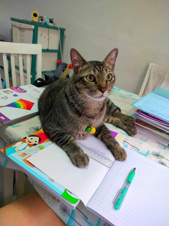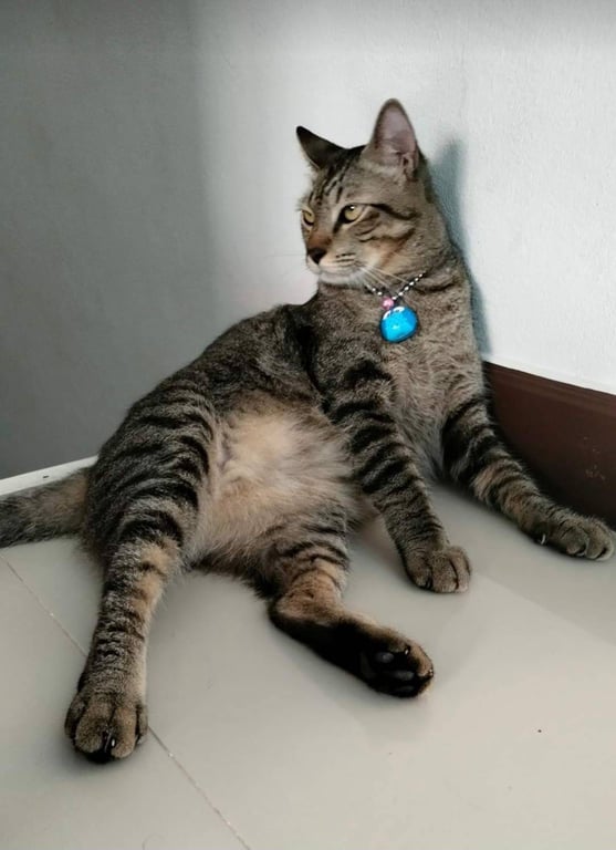 รอยตำหนิ: ไม่มีน้องเป็นแมวลายสลิดสีเทาดำน้องเป็นแมวลายสลิดสีเทาดำเพศผู้ทำหมันแล้วน้องชื่อถุงเงิน