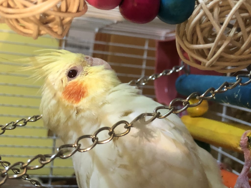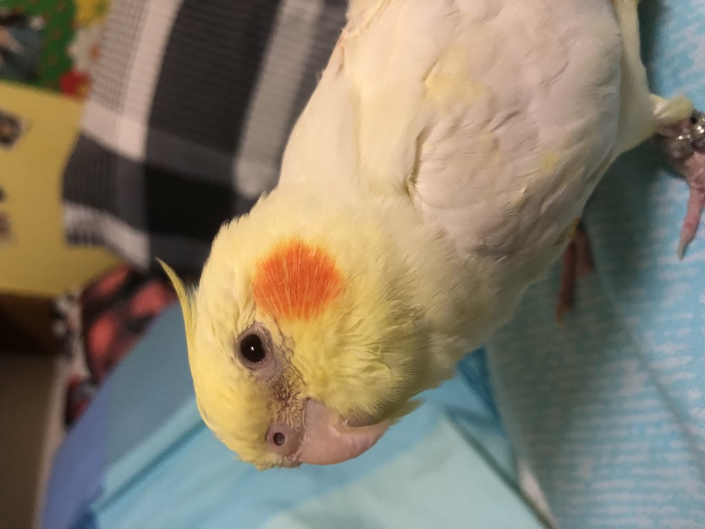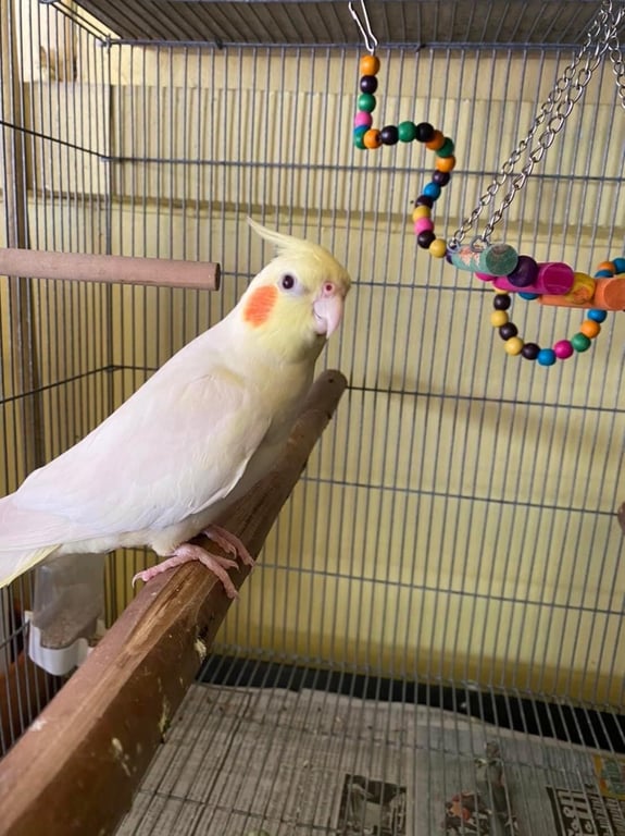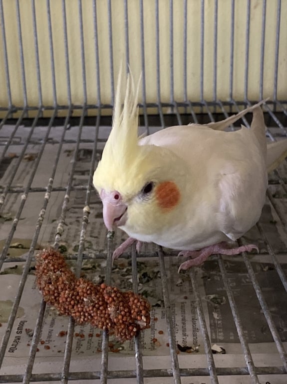 รอยตำหนิ: แก้มสีส้มตาแดงเป็นนกเลี้ยงจากลูกป้อนไม่ได้ใส่ห่วงที่ขา