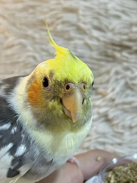 รอยตำหนิ: แก้มส้ม ติดสีดำตรงหน้สน้องอาจจะตื่นกลัว หรืออาจจะหิวจนยอมบินเข้าหาคน ถ้าใครพบเห็นรบกวนอย่าไล่จับแรงๆ นะคะ ใช้วิธีเรียกชื่อหรือใช้ เปิดเพลง คุกกี้ กัลของกินล่อ หรือทิชชู่ แล้วรีบติดต่อเจ้าของทันทีค่ะ
