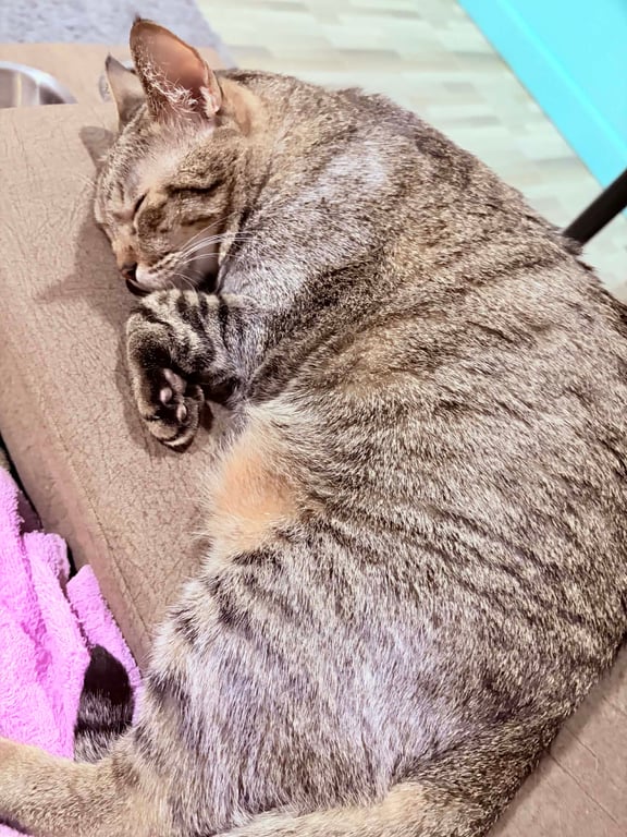 รอยตำหนิ: อ้วน หางยาว หน้าเล็ก ตาสีเหลืองทอง ในปากมีปานสีดำนิสัยขี้อ้อนเงียบ พูดเก่ง ขนจะออกขาวแล้ว