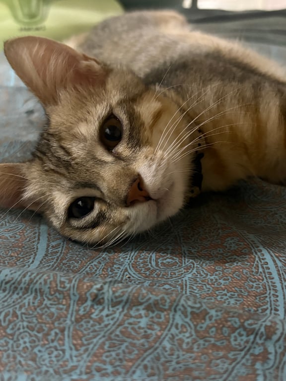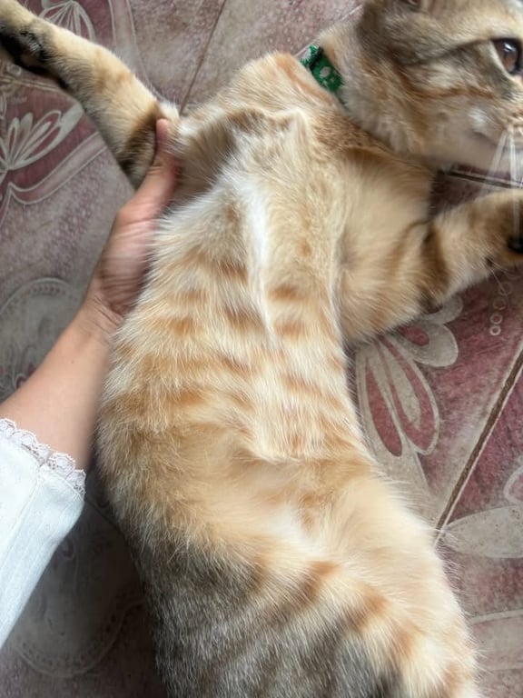 รอยตำหนิ: ไม่มีรอยตำหนิ แต่มีลักษณะดวงตาที่เป็นเอกลักษณ์นิสัยเข้ากับคนง่าย ขี้อ้อนมากๆ กลัวเสียงดังจะวิ่งหลบ กลัวแมวจรกัดจะวิ่งซ่อน และไม่ชอบคนแปลกหน้าอุ้ม ใส่ปลอกคอสีแดง เป็นผ้าสามเหลี่ยม