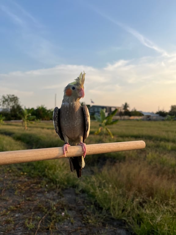 รอยตำหนิ: เล็บดำ2ข้าง ข้างละ2 นิ้ว ปากไม่ดำ จุกเทาปนเหลืองชอบร้องเพลง ไม่ค่อยเข้ากับใครเป็นนกรักสงบ แต่ก็ขี้เล่นนิดนึง