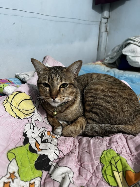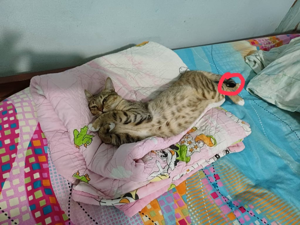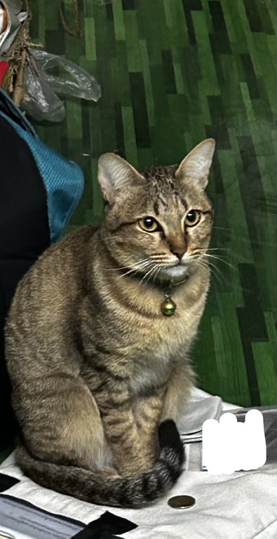รอยตำหนิ: แมวลายสลิด หางตรงปลายหางมีแต้มขาวแมวลายสลิด เท้าขาว ปลายหาแต้มขาว หายแถว ภูฝางล้านนารีสอร์ท บ้านสันกลางใต้ ต.สันกลาง อ.สันกำแพง จ.เชียงใหม่