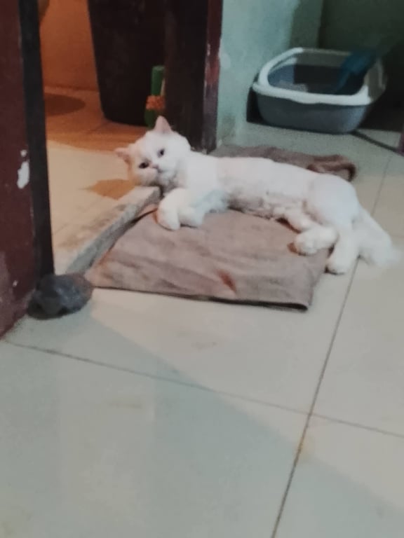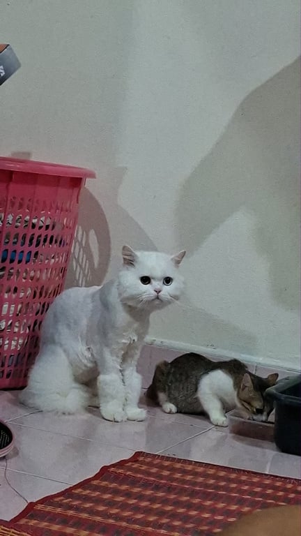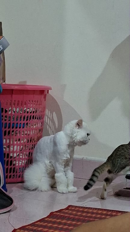 รอยตำหนิ: ไม่มีตำหนิตัดขนแล้ว เหลือขนไว้แค่ตรงหาง ขนสั้นสีขาว ตา2สี ฟ้าส้ม สีส้มด้านขวา สีฟ้าด้านซ้าย ขี้กลัว ขี้ตกใจ