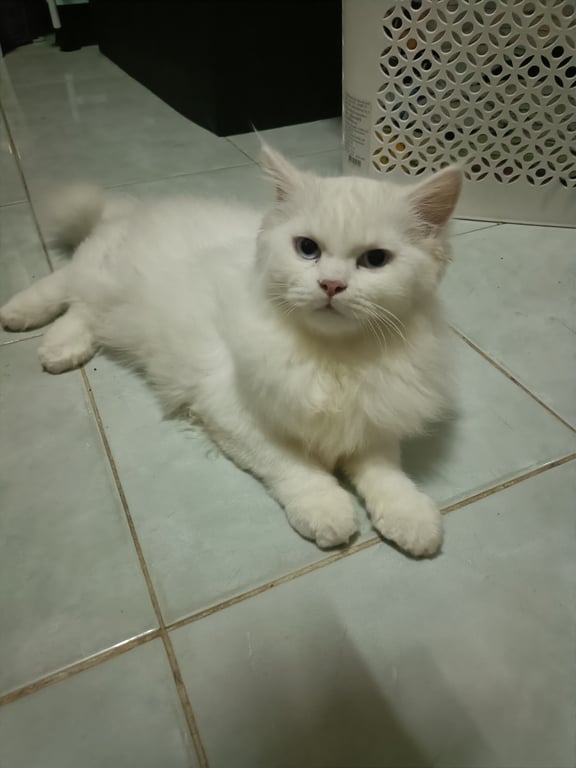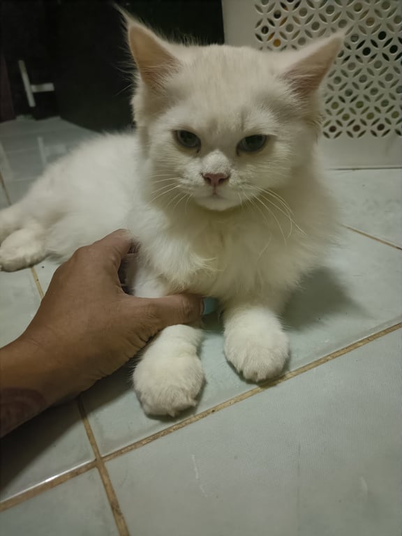 รอยตำหนิ: หางกุดม้วนๆตรงหางขี้เล่นซนๆหน่อย แมวเด็กอายุ 5-6เดือน ตัวสีขาวล้วน