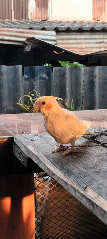 รอยตำหนิ: ที่ปีกเปื้อนสีดำอ่อนๆที่ขาขวามีห่วงขาที่ไว้ใส่โซ่ร้องเพลงคุกกี้ผิวปาก