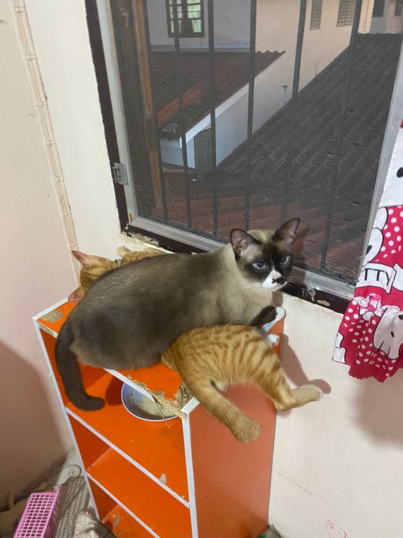 รอยตำหนิ: ฟันหักนิดหน่อย1ซี่ ฟันเล็กมี4ซี่ ตาเหล่ พุงย้วยจากการทำหมันไม่ให้คนจับ มักเดินหนีและมองหน้า