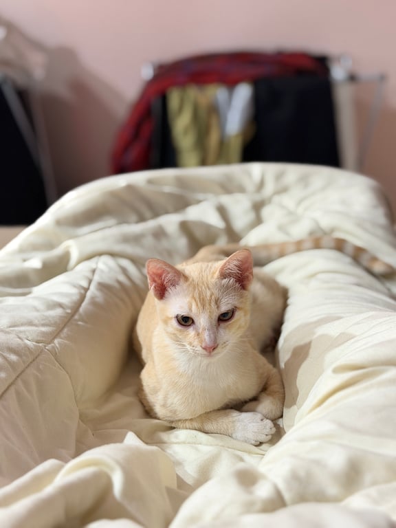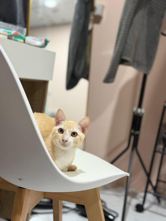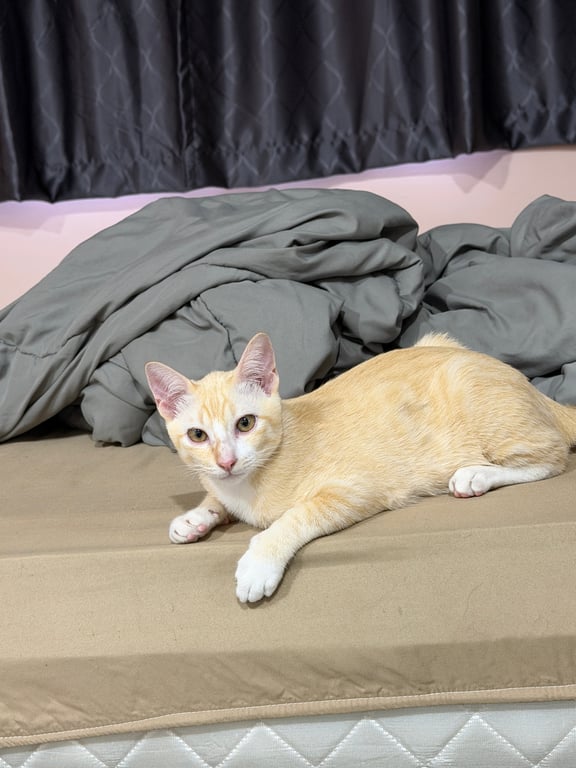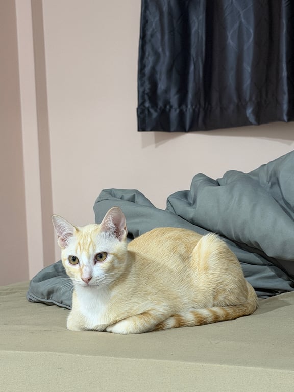 รอยตำหนิ: บนจมูกขวามีรอยบากนิดหน่อย และข้างลำตัวฝั่งซ้าย มีปานขนสีเทาจุดเล็กๆ 1 จุดซนมาก ชอบเล่นกับคน