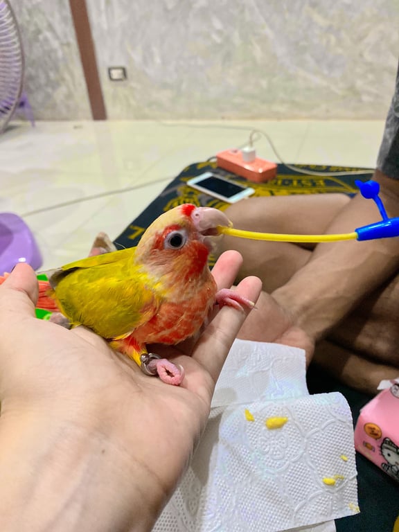 สี: คอแดงขอบตาแดงปีกเขียวท้องเหลืองแดง
