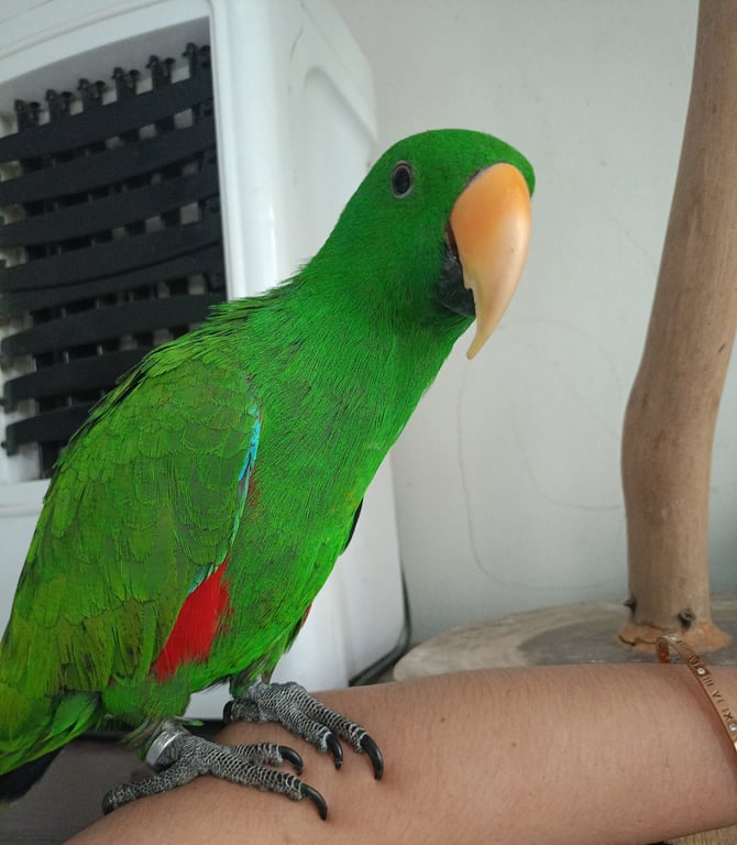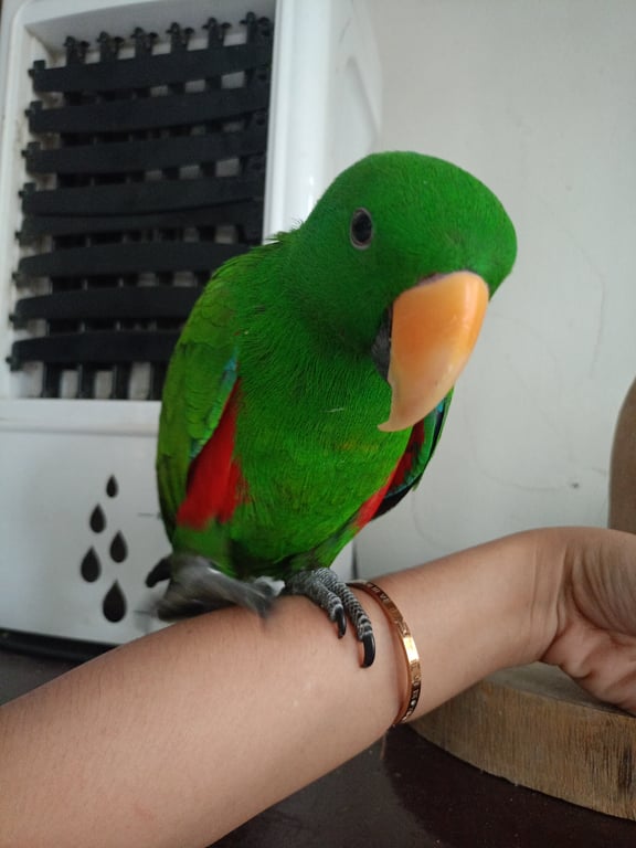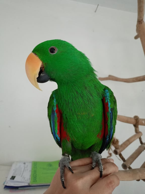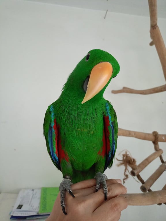 รอยตำหนิ: มีห่วงขาสีเงินเชื่อง บินไม่เก่ง ไม่เคยหัดบิน เรียกชื่อ จะส่งเสียงรับ พูดได้นิดหน่อย ฮัลโหล จ๊ะเอ๋