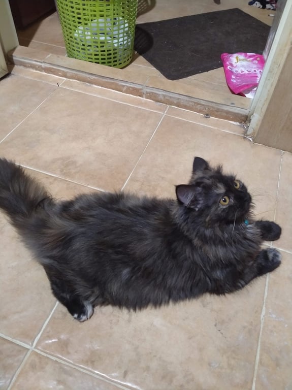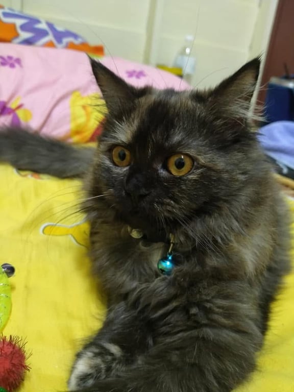 รอยตำหนิ: ปลอกคอสีดำมีสีม่วงแทรกนิดหน่อยขี้อ้อน แต่จะไม่ค่อยให้อุ้ม