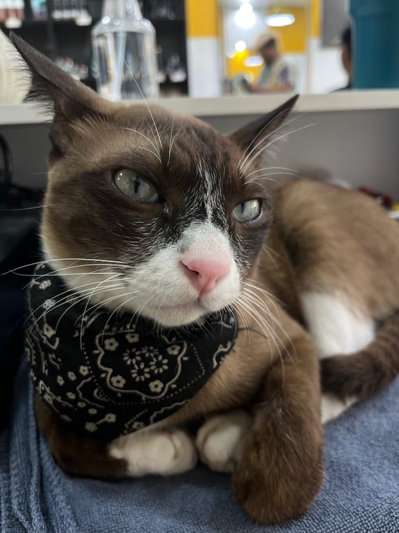 รอยตำหนิ: สีขาวครอบปากกับจมูกไม่กลัวคน ถ้าจะให้เลี้ยงแล้ววิ่งมาหาให้พูดว่า แร็ปเปอร์ แคนดี้ ปังปิ้ง เป็นชื่อพี่น้องเค้า เวลาเรียกกินข้าว เพราะถ้าคนอื่นเรียกปกติเค้าจะยืนมองอย่างเดียว