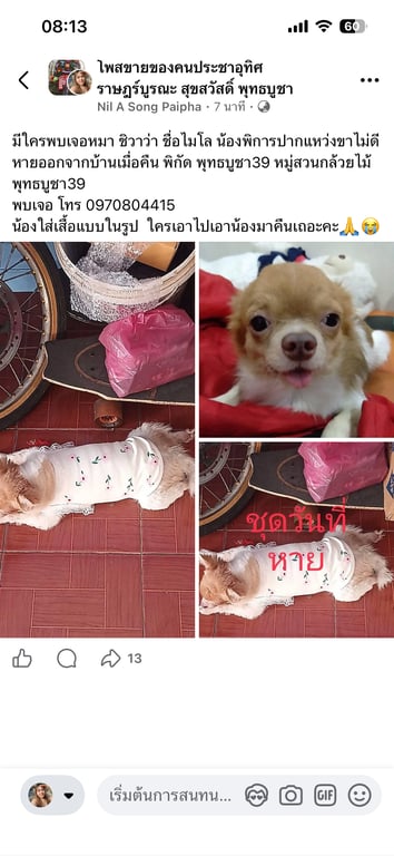 รอยตำหนิ: ปากแหว่ง เดินขาเจ็บไม่ดุ ไม่เห่า