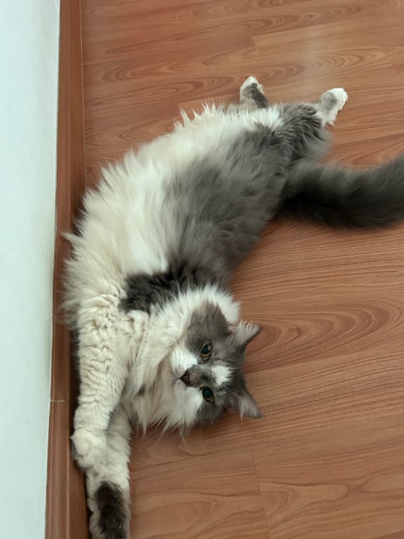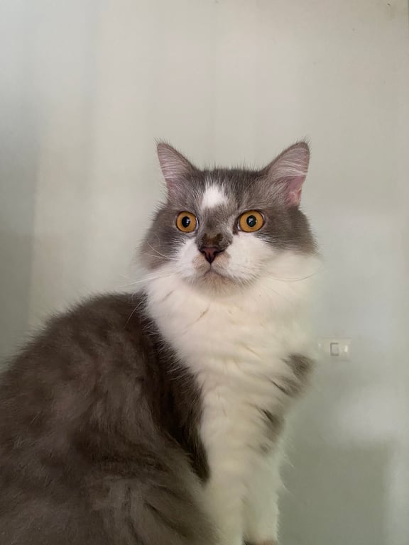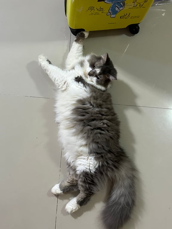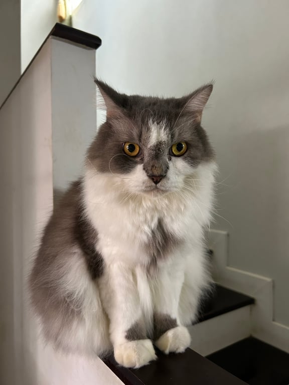 รอยตำหนิ: ขนตรงหูไม่ค่อยมี เป็นแมวแก่ ตรงเท้ามีสีดำคล้ายถุงเท้าขี้กลัว