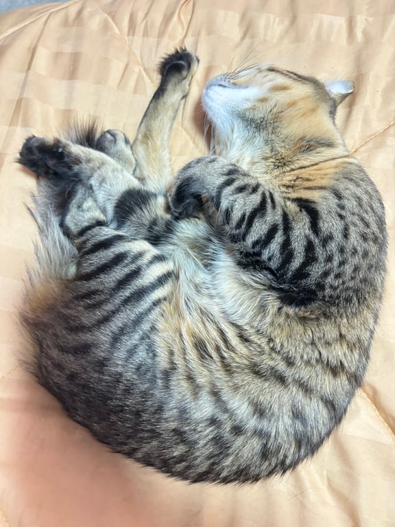 รอยตำหนิ: ขนฟูตรงหาง ลำตัวขนไม่ยาว ลำตัวลายสลิดลายจุดไม่กลัวคนแต่เข้ากับแมวตัวอื่นยาก