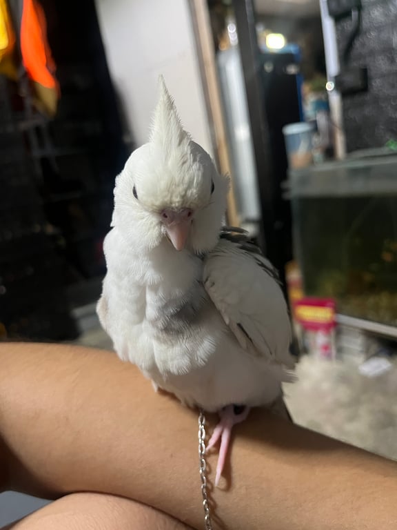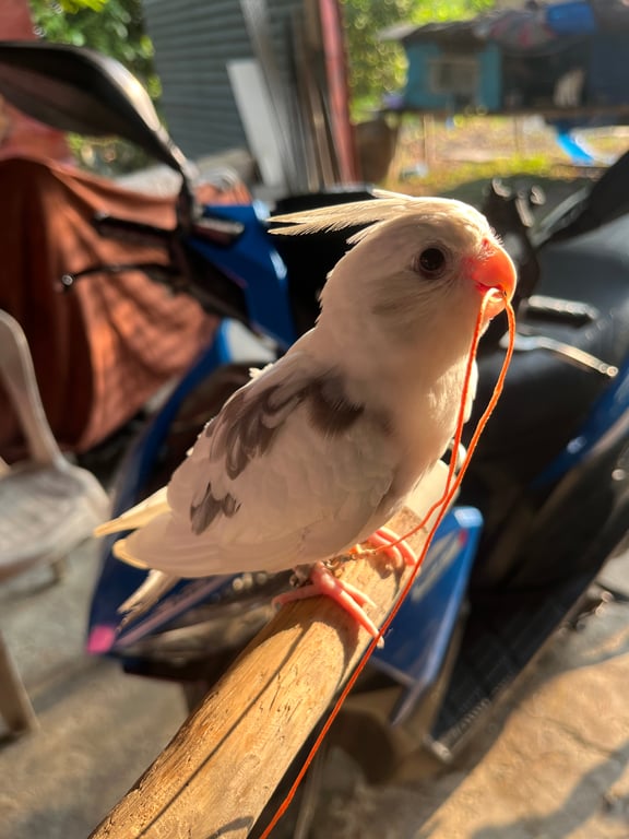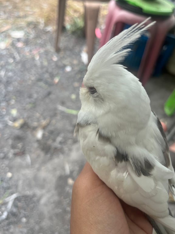 รอยตำหนิ: มีสีเทาที่ปีกข้างหลังคล้ายๆตัวV ตรงหน้าอกมีสีเทาๆ มีห่วงขา2ข้าง ห่วงเปิดกับห่วงสีน้ำเงินมีเบอร์โทรติดคน