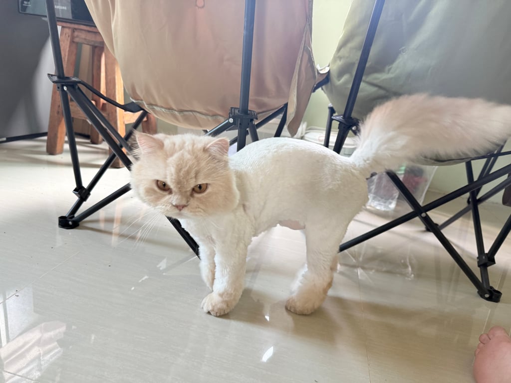 รอยตำหนิ: ขนสั้นพึ่งไปตัดขนสังกะตังมาขนสีครีม ตัดขนสั้นๆ