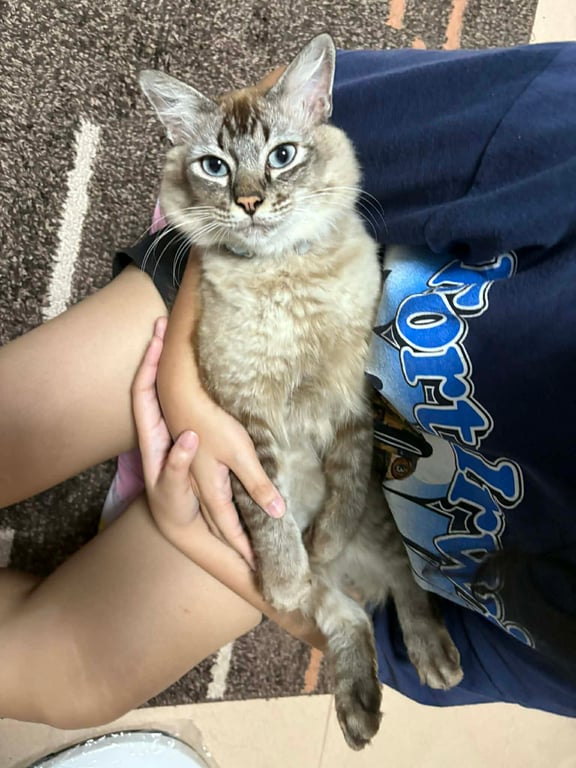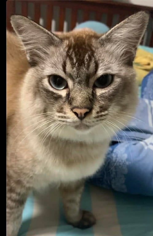 รอยตำหนิ: มีลายสลิดที่ขา หางฟู ปลอกคอสีฟ้า มีป้ายฉีดวัคซีนแล้ว(กรมปศุสัตว์ โรคพิษสุนัขบ้า)ไม่ดุ