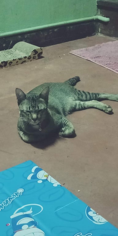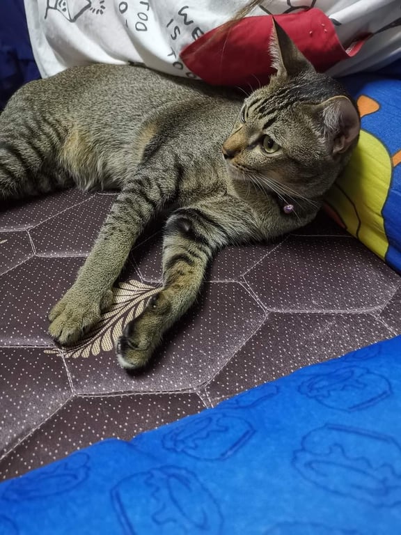 รอยตำหนิ: หางหัก ประมาน2นิ้ว ตัวเนียน ลายมีตรงขาส่วนใหญ่ หนักประมาน5 กิโล.ปลอกคอชมกระพรวนชมพูน้องขี้กลัว ตกใจกับเสียงดังง่าย ขี้ระแวง เลี้ยงน้องป้อนนมน้องตั้งแต่เด็ก จากการเก็บใต้อาคาร แอบเลี้ยงมาตลอดน้องเลยไม่เคยได้เดินเล่น จะเป็นการอุ้มดูวิว มากกว่าค่ะ น้องชอบดูนกจ้องนก มากค่ะ