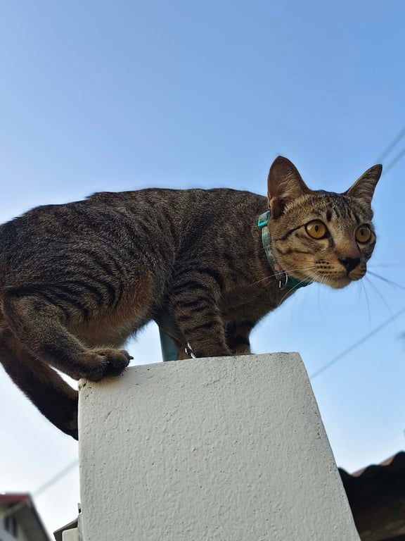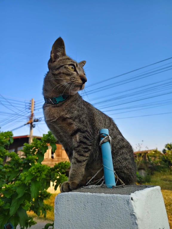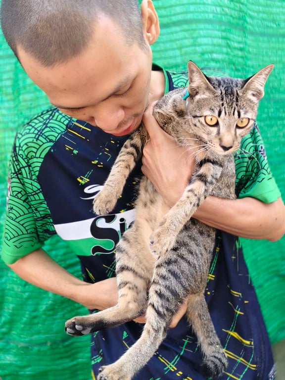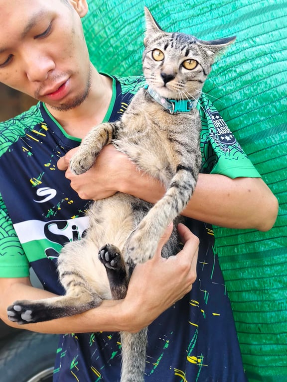 รอยตำหนิ: แมวลายสลิด ต้นหางเบี้ยวไปทางขวา ปลอกคอสีฟ้าลายดอกไม้ไม่มีกระดิ่งติดคนง่าย ร้องเสียงเบา/นิสัยชอบนอนกินได้ทุกอย่าง