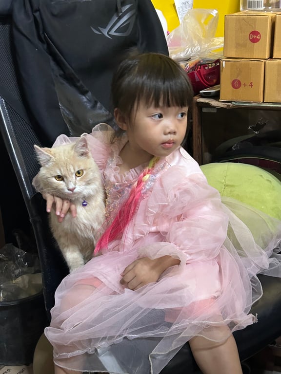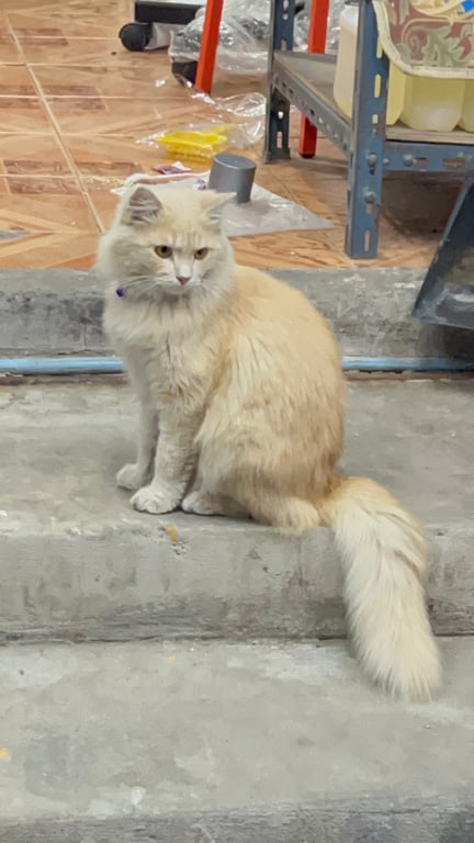 รอยตำหนิ: สีครีมนวลทั้งตัว ตาสีเหลืองเชื่องไม่ดุไม่กัดอุ้มง่ายน้องเป็นแมวโตมากับลูกสาวจะเชื่องมากๆ ขนกึ่งสั้นกึ่งยาว หายวันที่9เมษา69