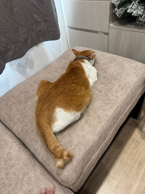 รอยตำหนิ: หางหักลักษณะเด่นคือปลอกคอสีดำนีออน มีป้ายชื่อและเบอร์โทรที่ปลอกคอ 📌ตัวสีขาวส้ม หางหัก 📌 เชิ่อง รู้จักชื่อ ไม่กัด