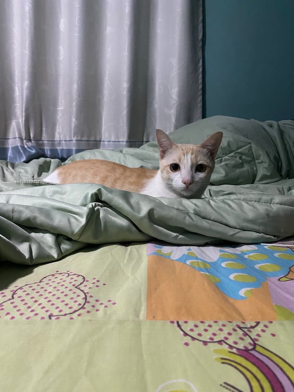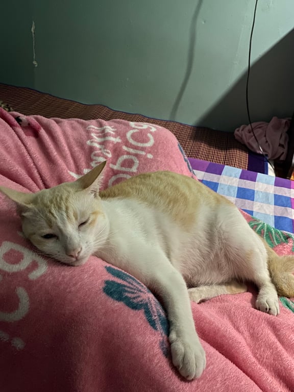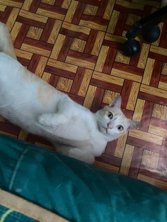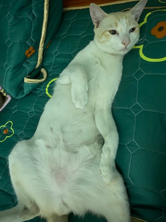 รอยตำหนิ: หางพับ ไม่มีปอกคอ ตาส้มแมวสีขาวส้ม นิสัยขี้อ้อน ไม่ดุ ถ้าไม่รู้จักจะไม่ค่อยเข้าใกล้แต่สามารถสนิทได้ไว