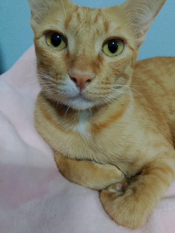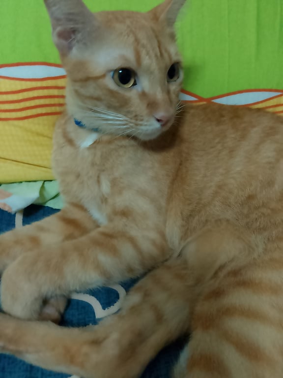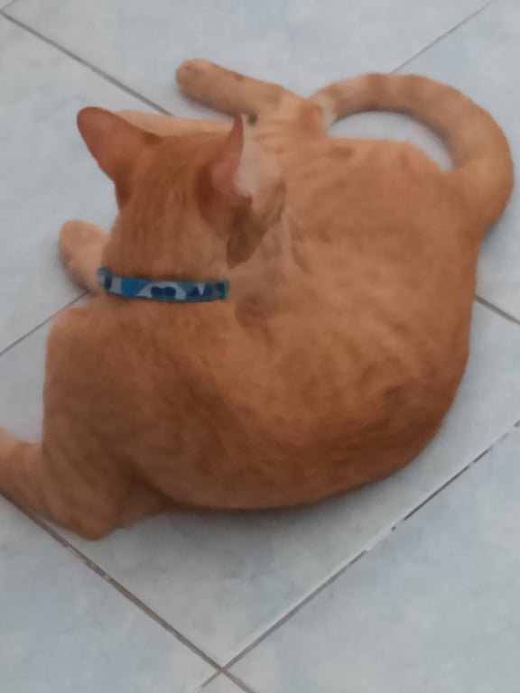 รอยตำหนิ: มีปลอกคอสีน้ำเงินไม่มีกระดิ่งขี้กลัว ขี้ตกใจ ไม่ชอบให้จับตัว