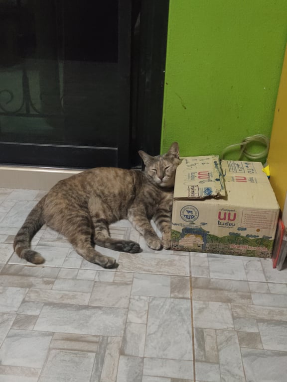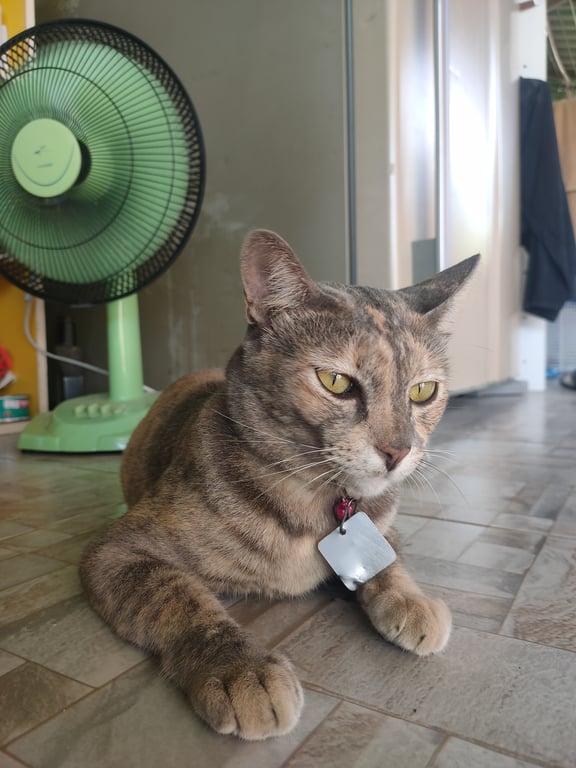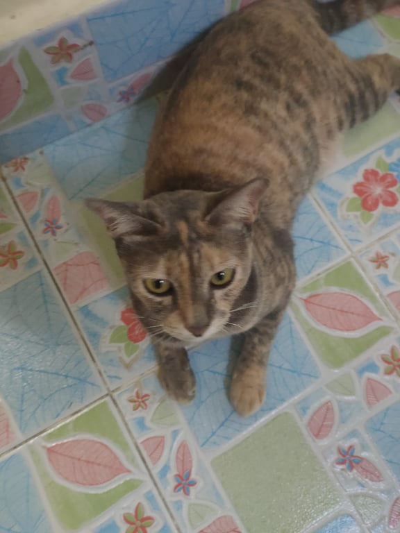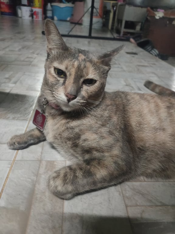รอยตำหนิ: เทาน้อยตัวอ้วน ท้องห้อยใส่ปลอกคอสีชมพู ลูกกระพรวนสีชมพู เข้ากับคนง่าย