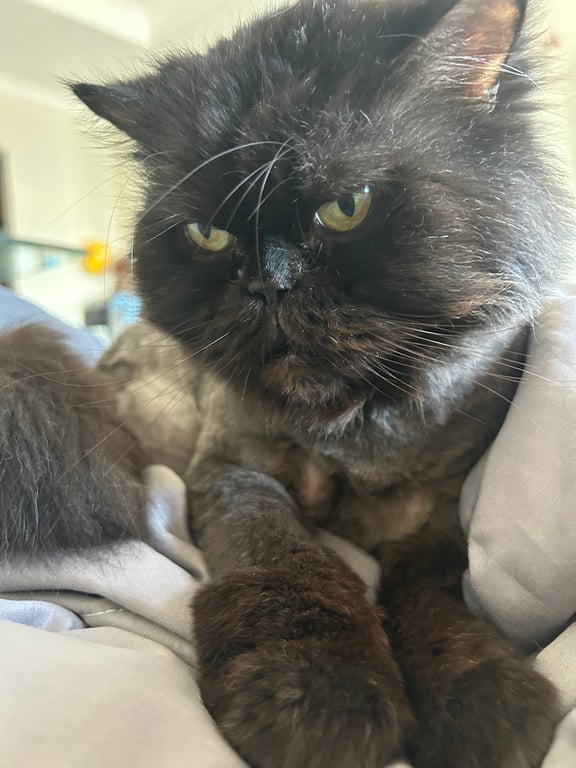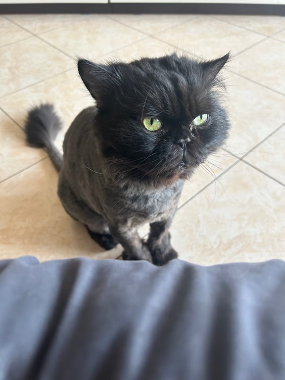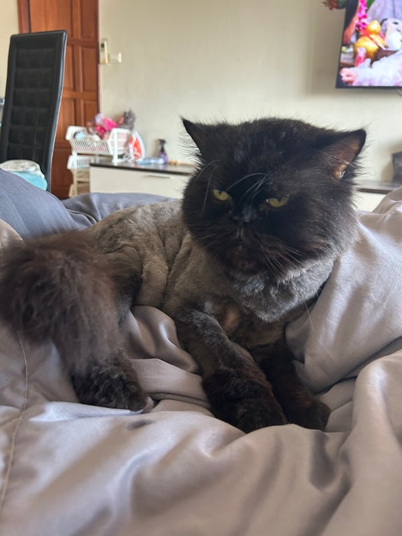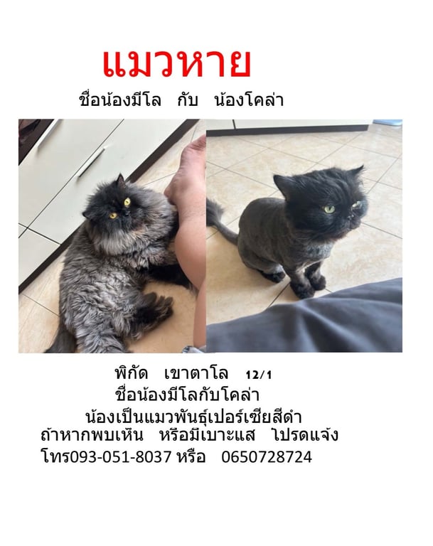 รอยตำหนิ: สีดำสีดำทั้ง มีโล กับ โคร่า ขนยาว ตาสีส้มทอง