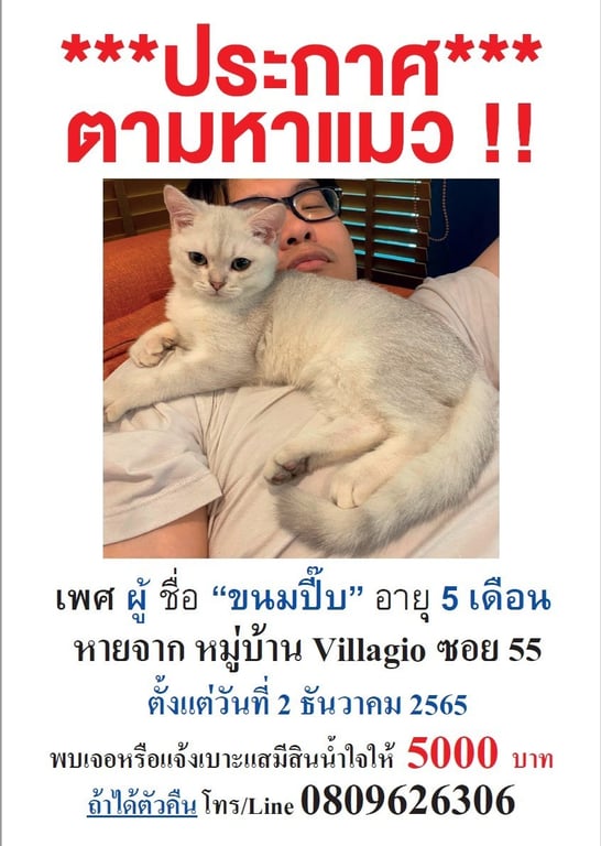 รอยตำหนิ: ขนหายใต้คาง ไม่มีปลอกคอค่อนข้างขี้กลัว แต่อ้อนมาก