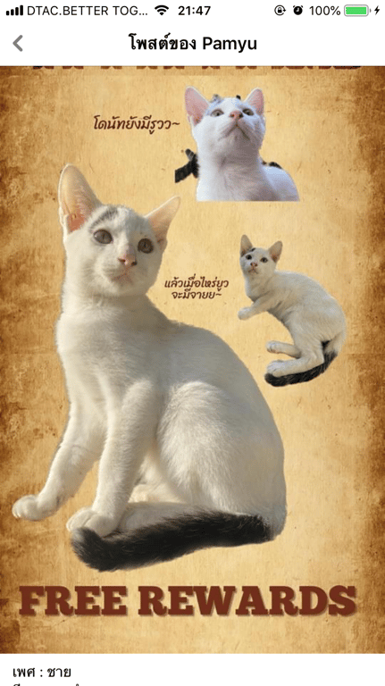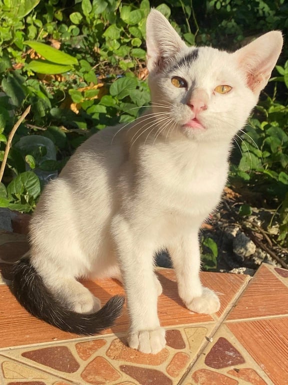 รอยตำหนิ: มีคิ้วข้างเดียวสีดำน้องค่อนข้างกลัวคน