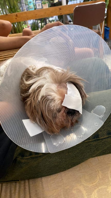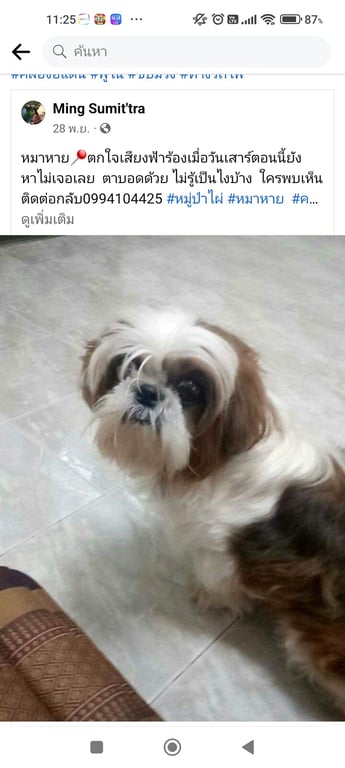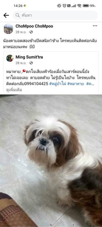 รอยตำหนิ: ตาบอดสองข้างปิดสนิท1ข้าง (ตาซ้าย) อีกข้างเหลือตานิดๆ บอดหมาแก่อายุราวๆ14ปี