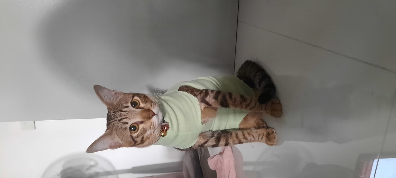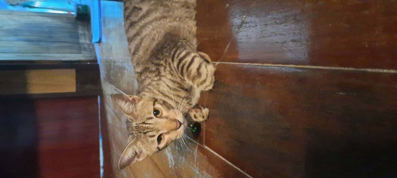 รอยตำหนิ: อ้วน เตี้ย ขาสั้นปลอกคอสีขาว มีกระดิ่ง 2 ลูก
