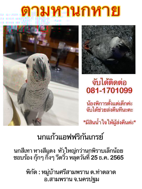 สี: ตัวสีเทาคล้ายนกพิราบ แต่คอใหญ่กว่า หางสีแดง