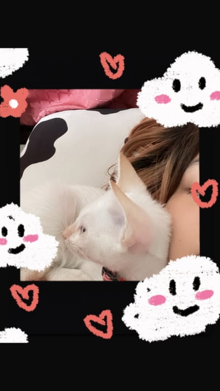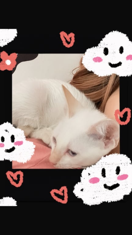 รอยตำหนิ: ปลายหางหักลงมาติดกับหางประมาณ1-2นิ้วน้องไม่ได้ใส่ปลอกคอเพราะอันเก่าหาย ขี้อ้อนคน ติดคน ขี้กลัว